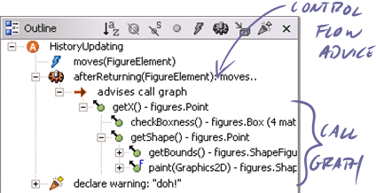 There are two ways in which crosscutting structure appears across the views that augment the structure navigable from the AspectJ editor: