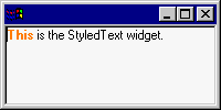 The StyledText widget provides a fast and easy to use means to display and edit text. Within the StyledText widget, the following attributes can be specified: