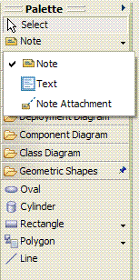 The Note tool allows the creation of comment boxes on the diagram, while the Note Attachment tool allows connecting a note and an arbitrary shape as follows: