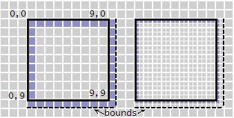 (1,1,10,10) and the border is drawn at (0,0,11,11)".