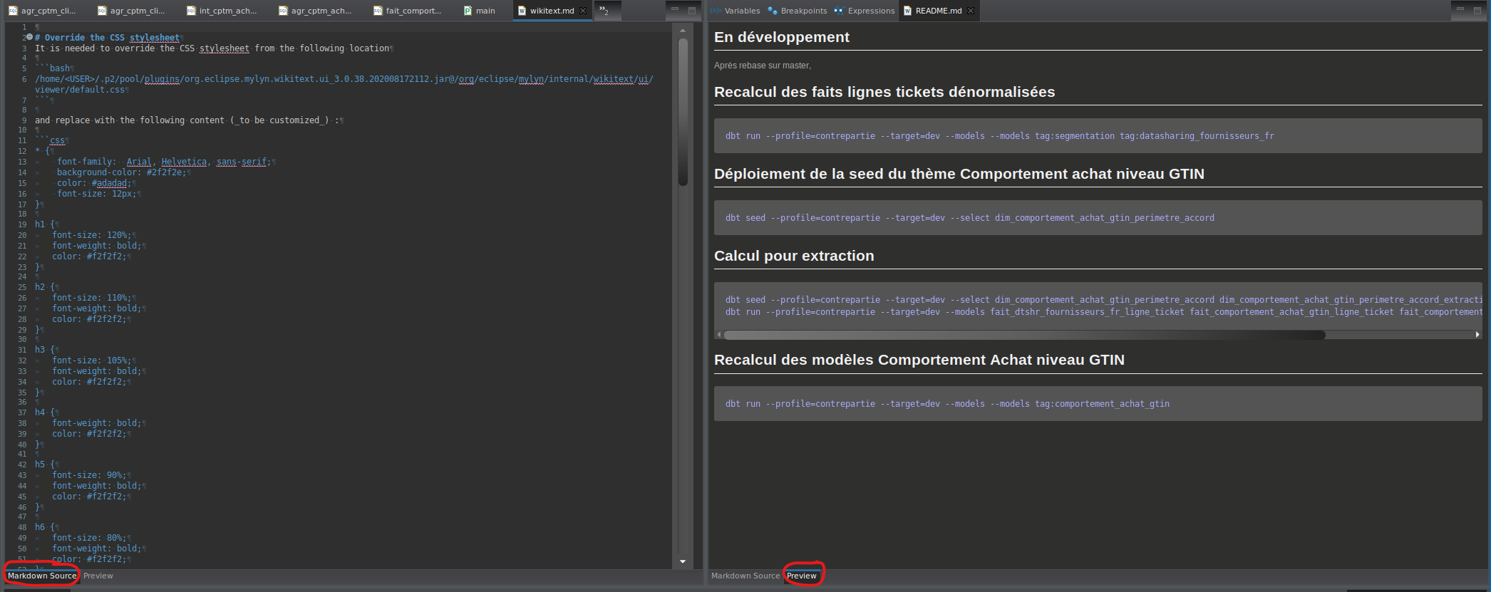for markdown preview, "simply" edit the CSS resource :/org/eclipse/mylyn/internal/wikitext/ui/viewer/default.css inside the jar file of the Eclipse plugins /home/<USER>/.p2/pool/plugins/org.eclipse.mylyn.wikitext.ui_X.Y.Z.DDDDDDDDDDDD.jar and replace with the following content