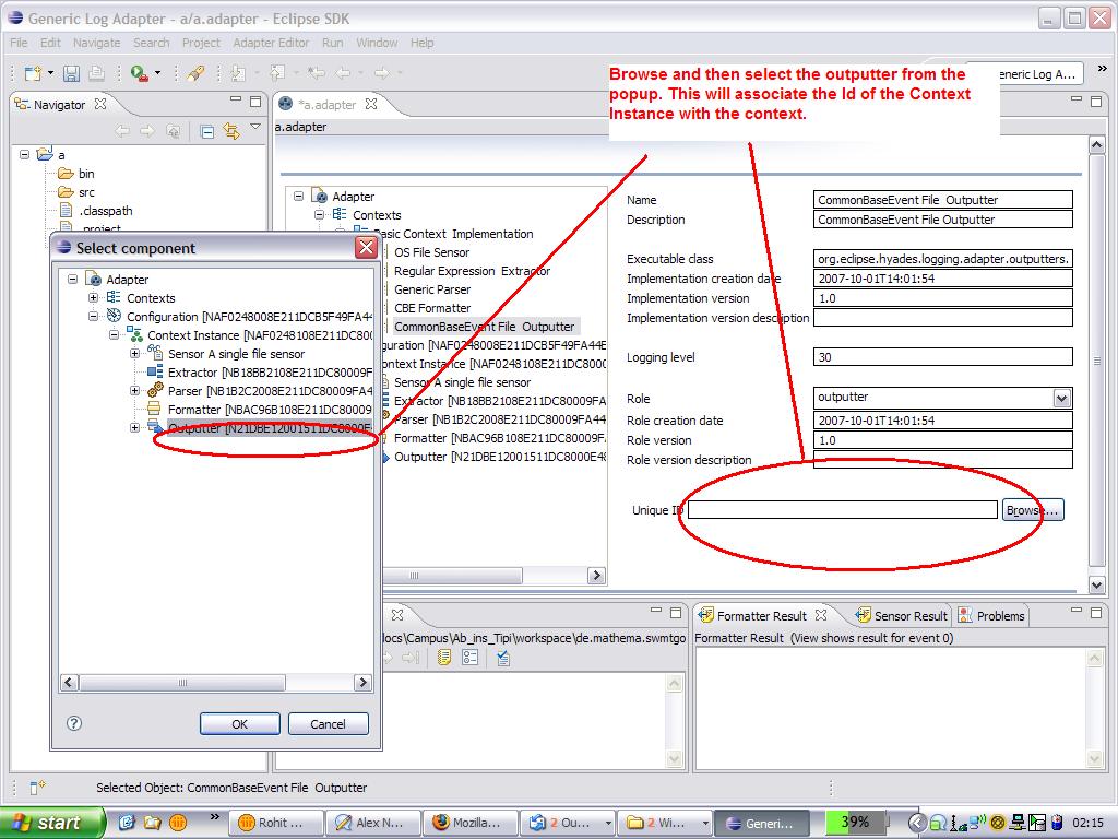 IComponents is an instance of my CustomOutputter (or the CBEFileOutputter)