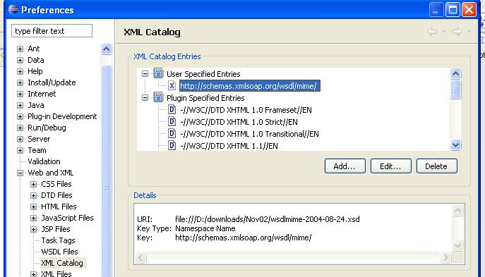 mentioned below then go to Preferences/Web and XML/XML Catalog, select the