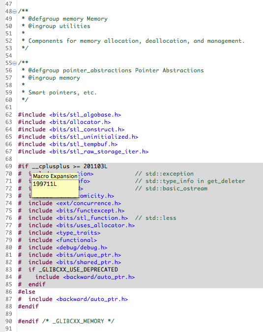 - Even then, the indexer will *mostly* see the GCC 4.2.1 include files for the standard library. I'm saying mostly, because it will pick up the correct path for files that don't exist in the 4.2.1 include location yet (C++11-only stuff such as type_traits). Needless to say, the indexer doesn't like that.