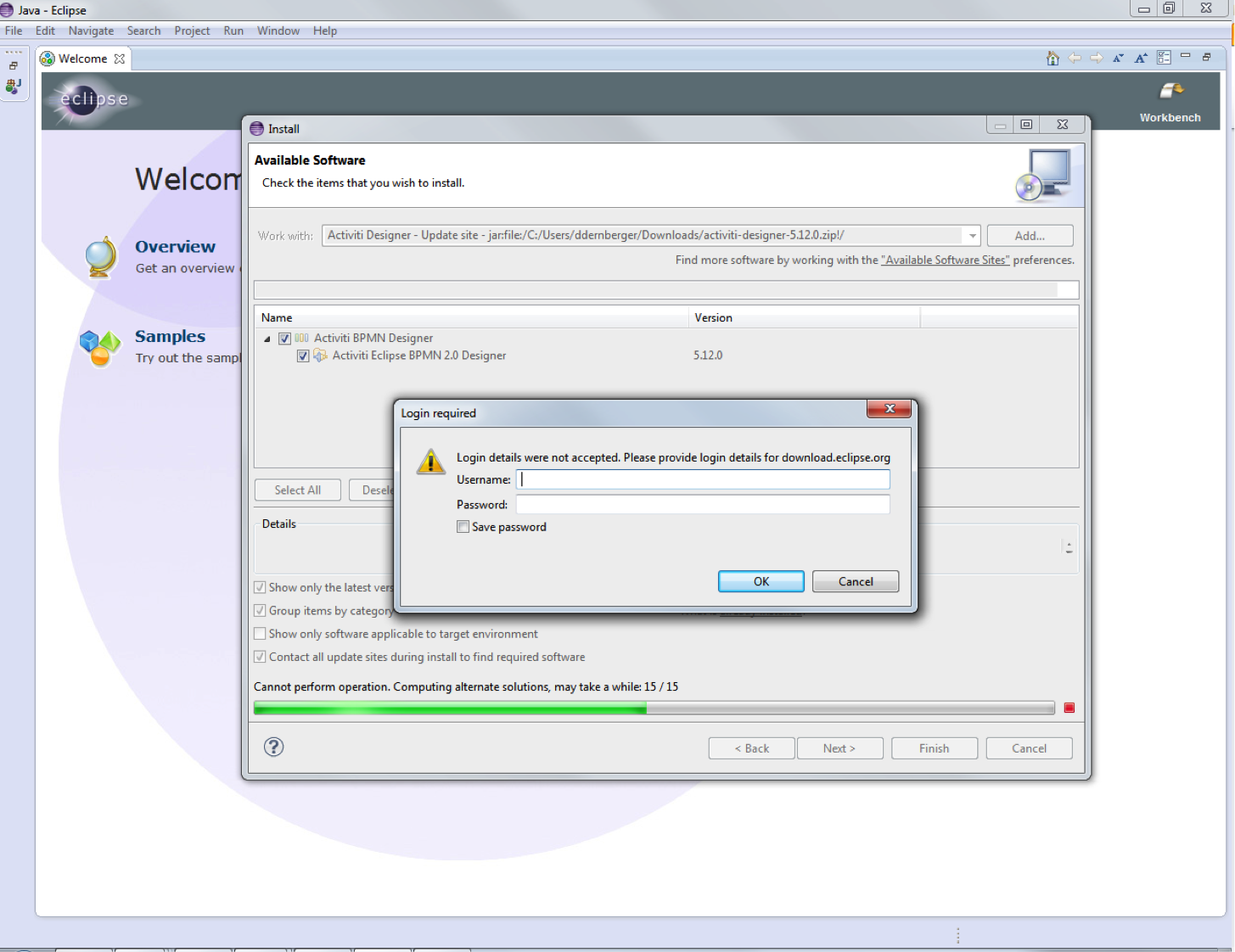 Software being installed: Activiti Eclipse BPMN 2.0 Designer 5.12.0 (org.activiti.designer.feature.feature.group 5.12.0)
