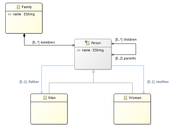 The edge "/father" & "/mother" is set the 'Derived' property in Ecore.