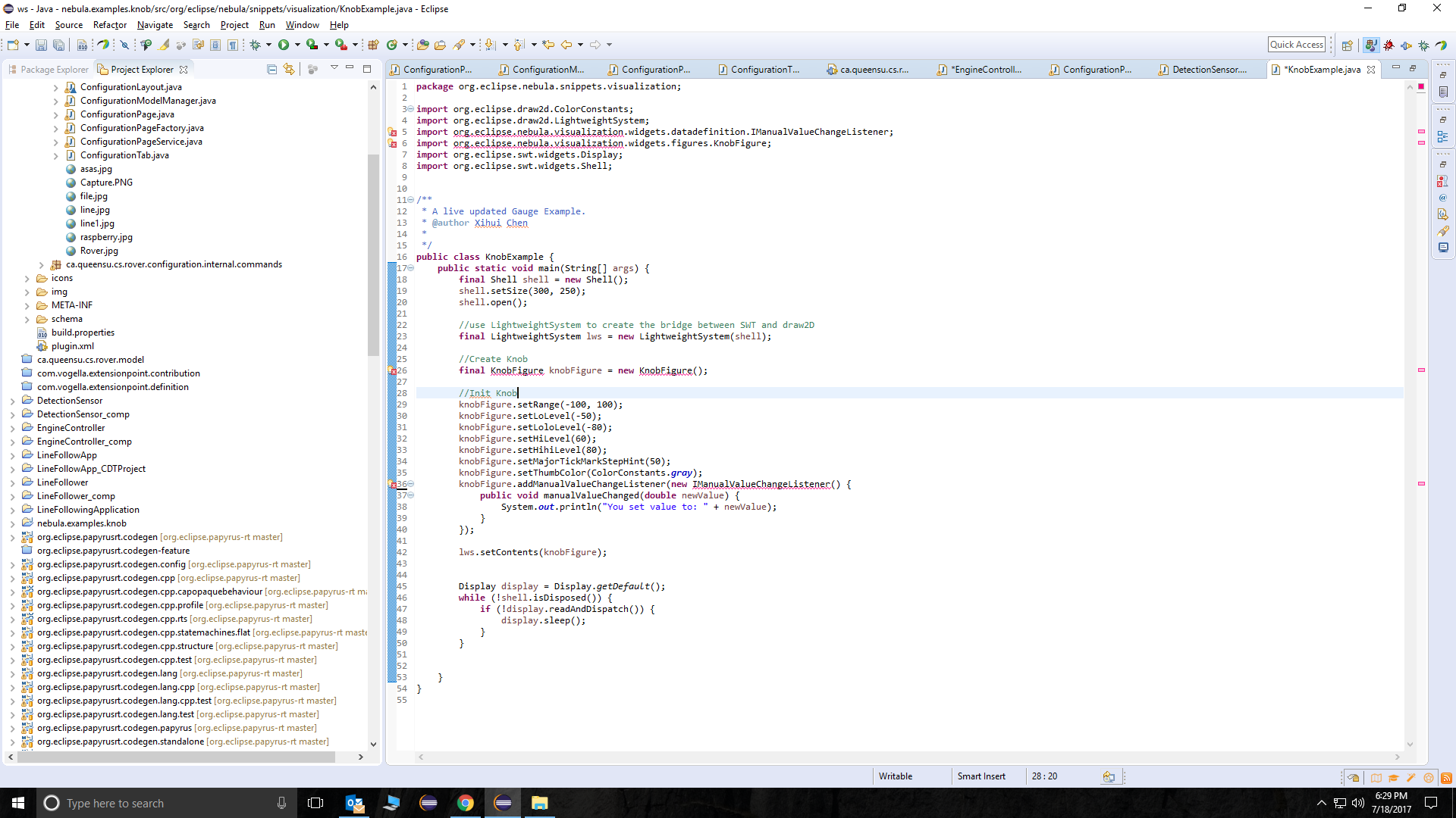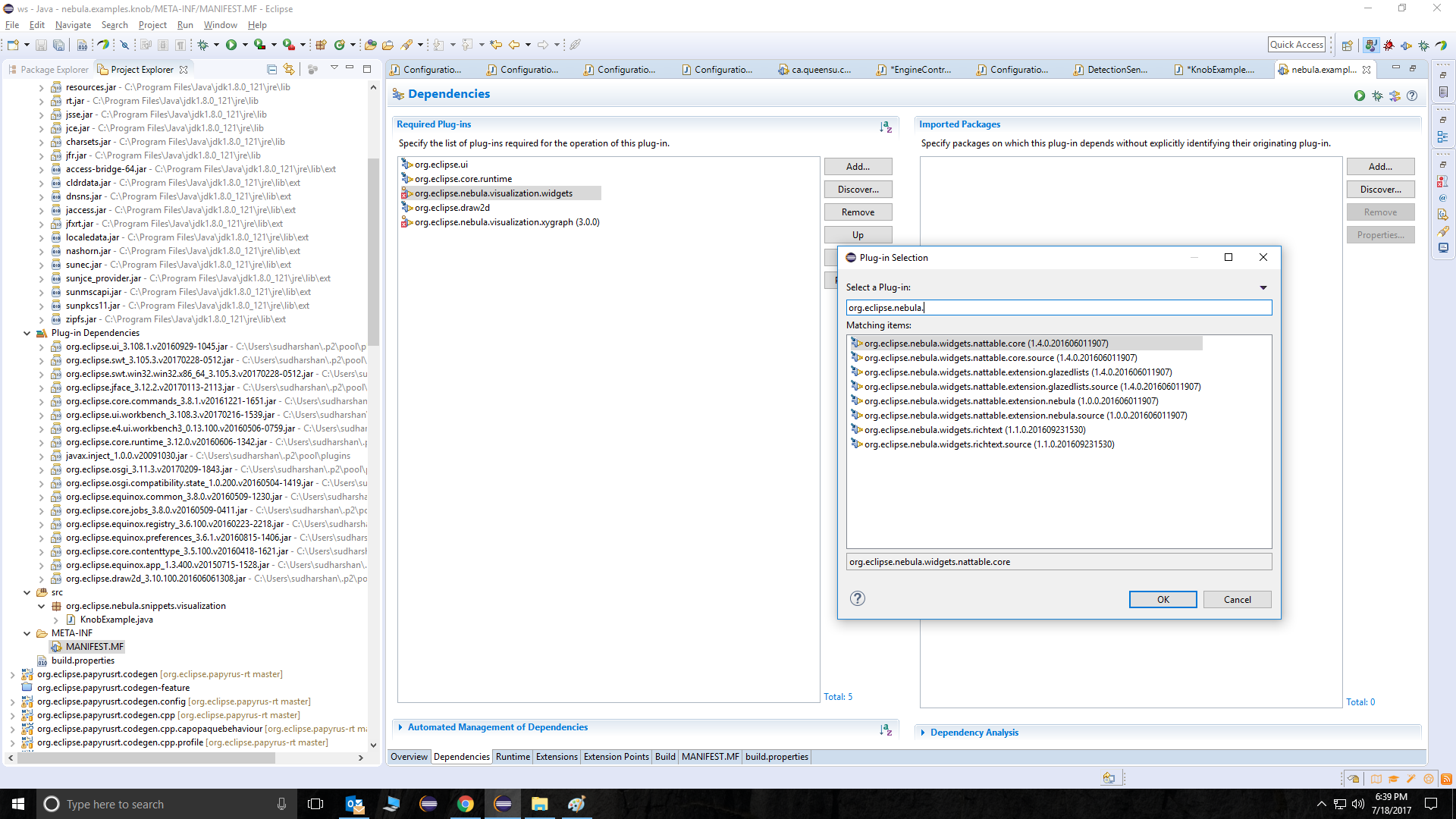 - I am creating a Java-plugin project, and I am using Java SWT in the project . I was trying to use the widgets provided as a part of the Nebula project (Mainly the Visualization Eg; Knobfigure, Gauge etc).