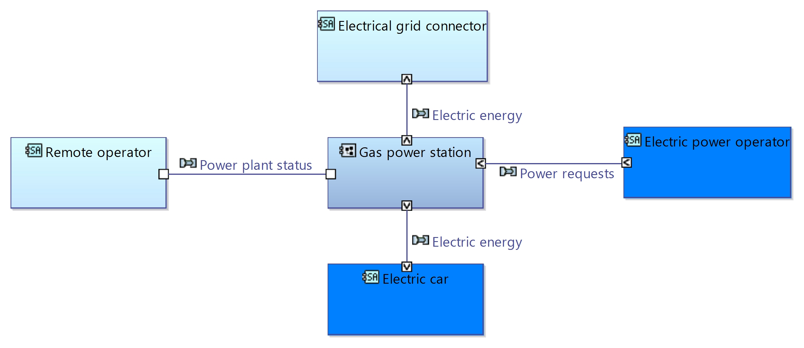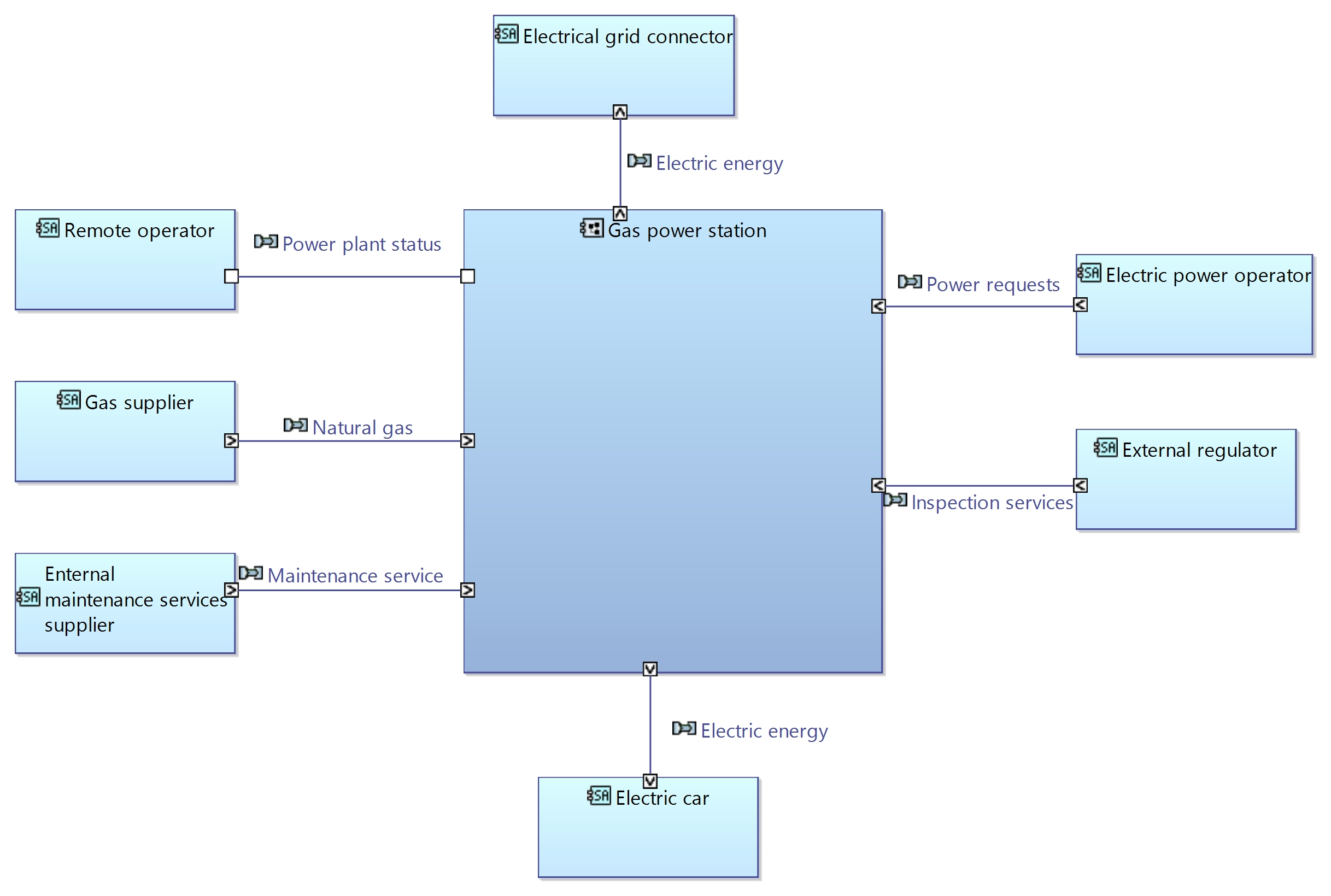 First, I represented the gas power station (as a black-box) with the interactions/services: