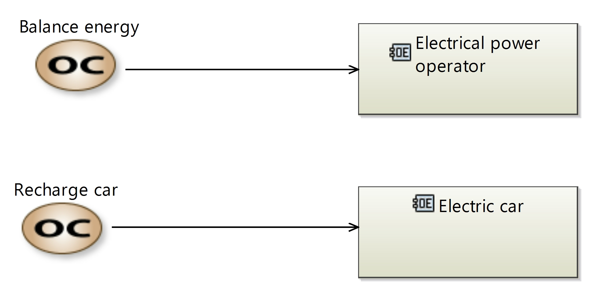 If we pick the purchase; whether the operator purchases energy energy from the Power station, how to represent it at OA level? There is no Gas Power Station, hence, how to represent the purchase interaction between the operator (external) and the gas station (system-of-interest)?
