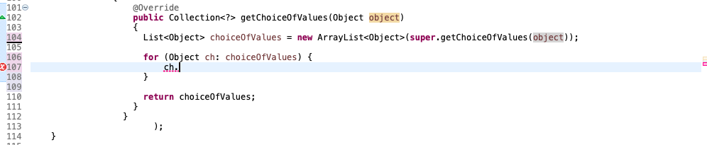 List<Object> choiceOfValues = new ArrayList<Object>(super.getChoiceOfValues(object));