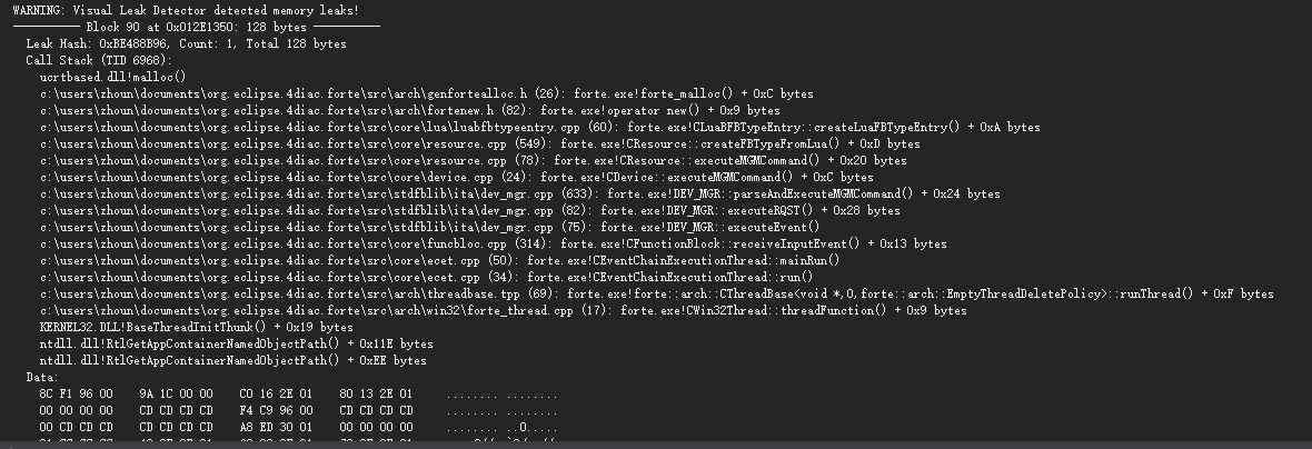 Last, I notice that each time a new FB type is created, a pointer to the instance of the CLuaBFBTypeEntry class will be created, but it seems that there is no call of its destructor function in forte, which leads to memory leaks when exiting forte. I've tested this problem in forte v1.13 using Visual Leak Detector on Windows.