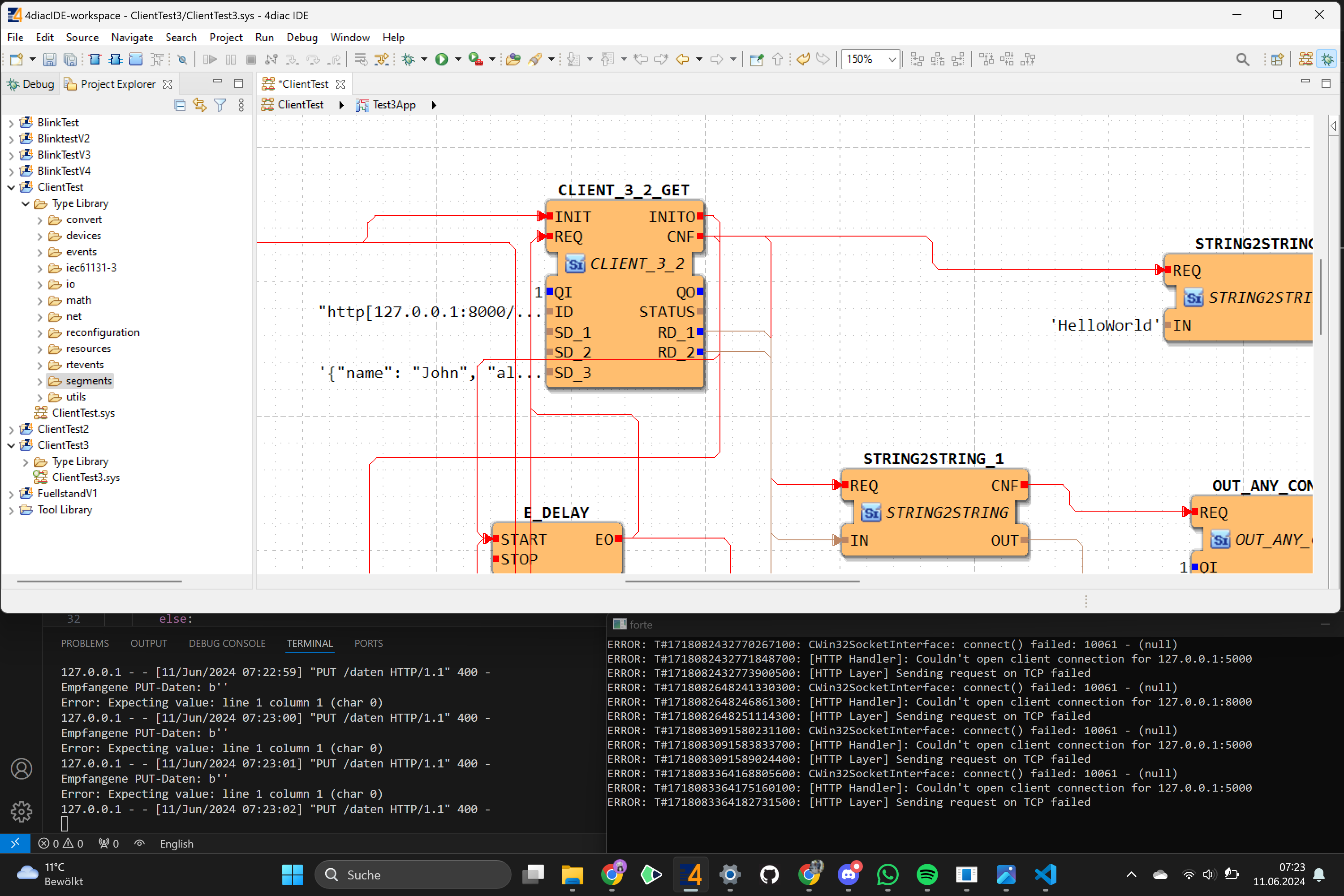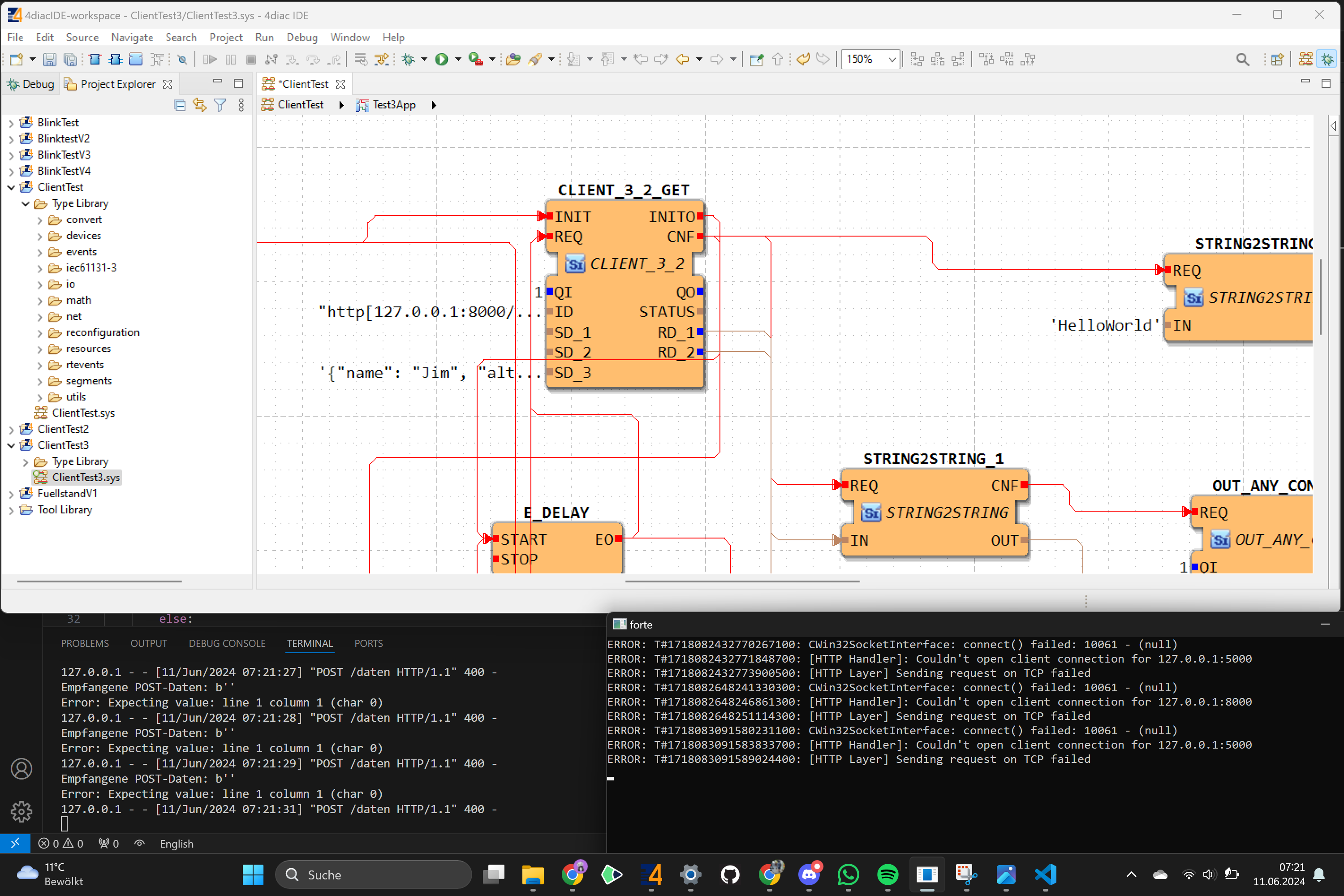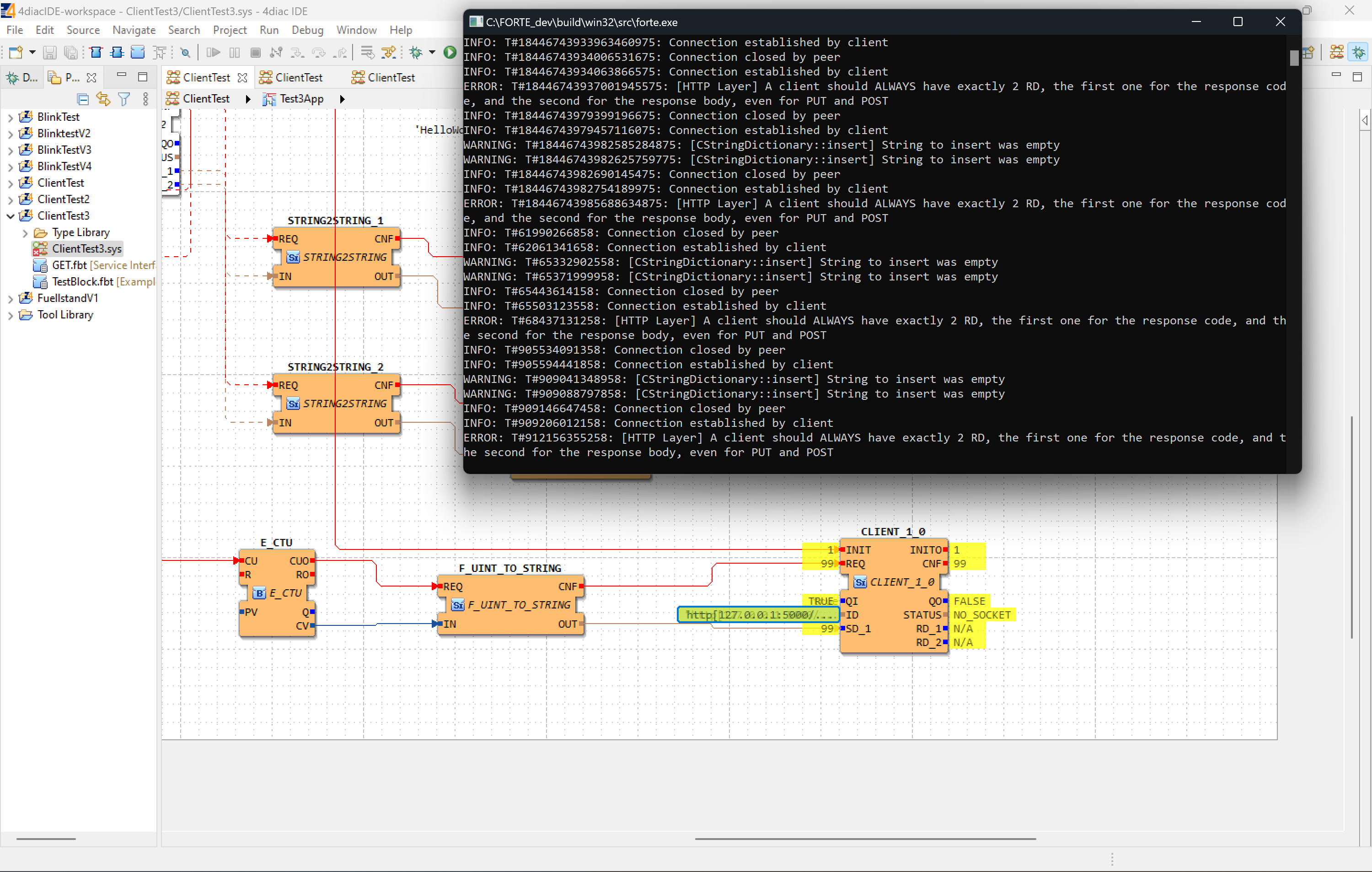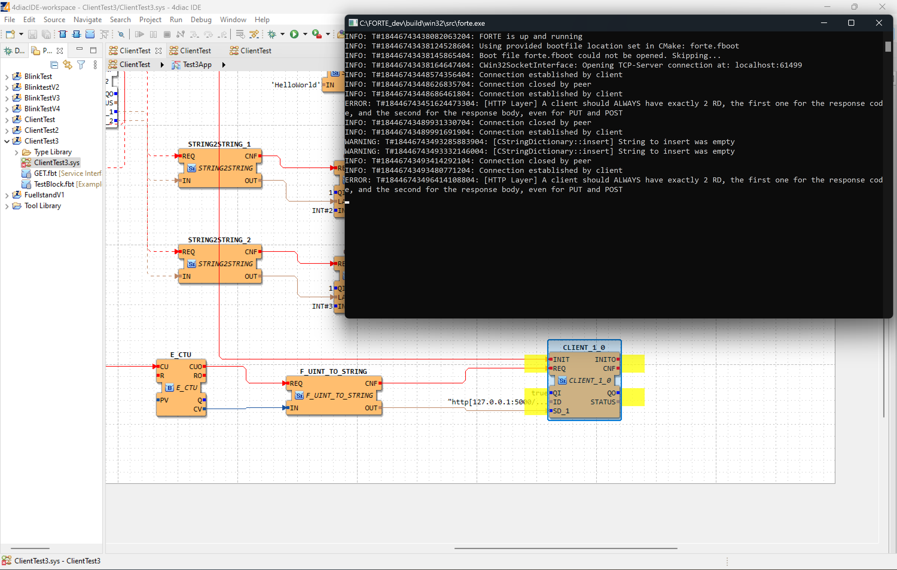 I used now the develop version of forte. I also created a client_3_2 (3SD and 2RD). I was able to create a GET-communication with my server.