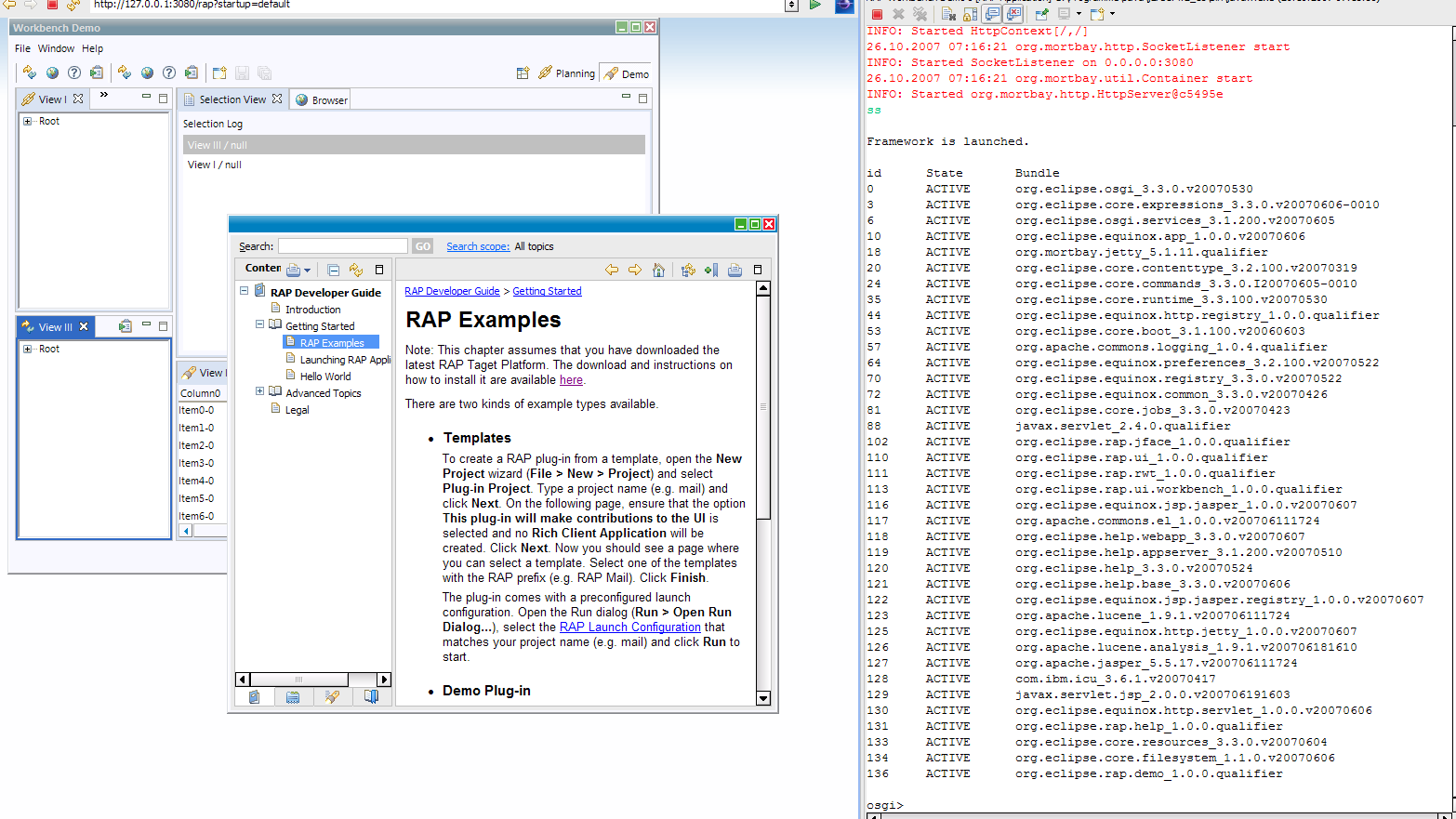 running it in the demo workbench implementation with the RAP help contents