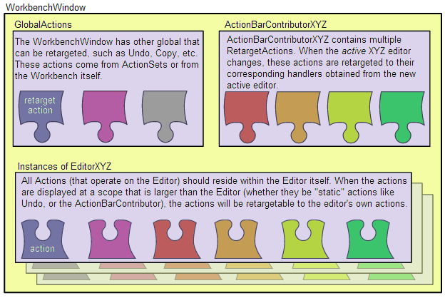 The EditorActionBarContributor contains RetargetActions that get retarget to
