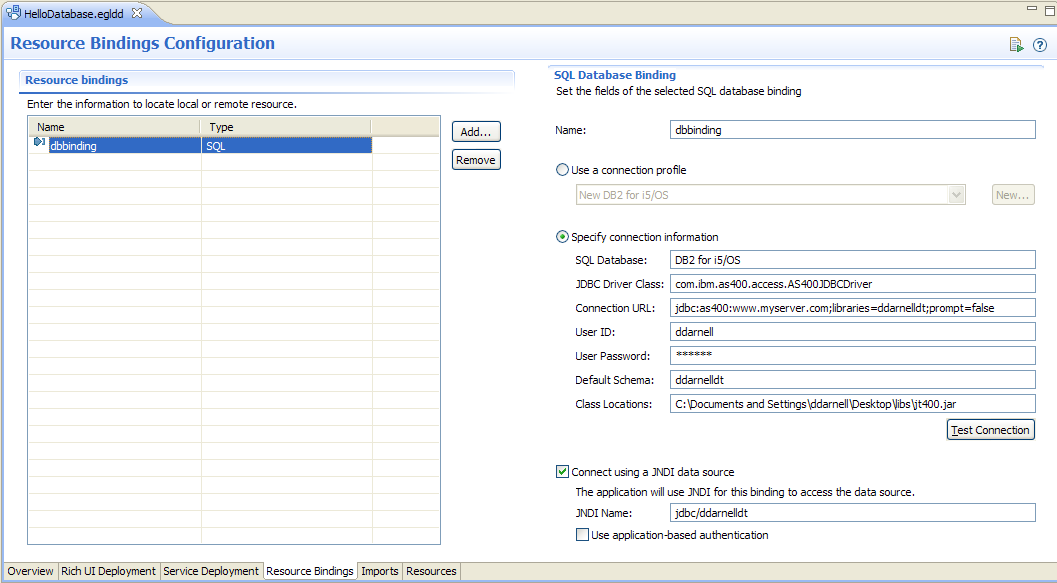 I worked back through the tutorial changing database access from the Derby database to the DB2 database on my iSeries. I set up the connection profile to access the iSeries with my userid and password. I qualified all references to the file/table on the iSeries (pending my default schema and library list question elsewhere in this forum).