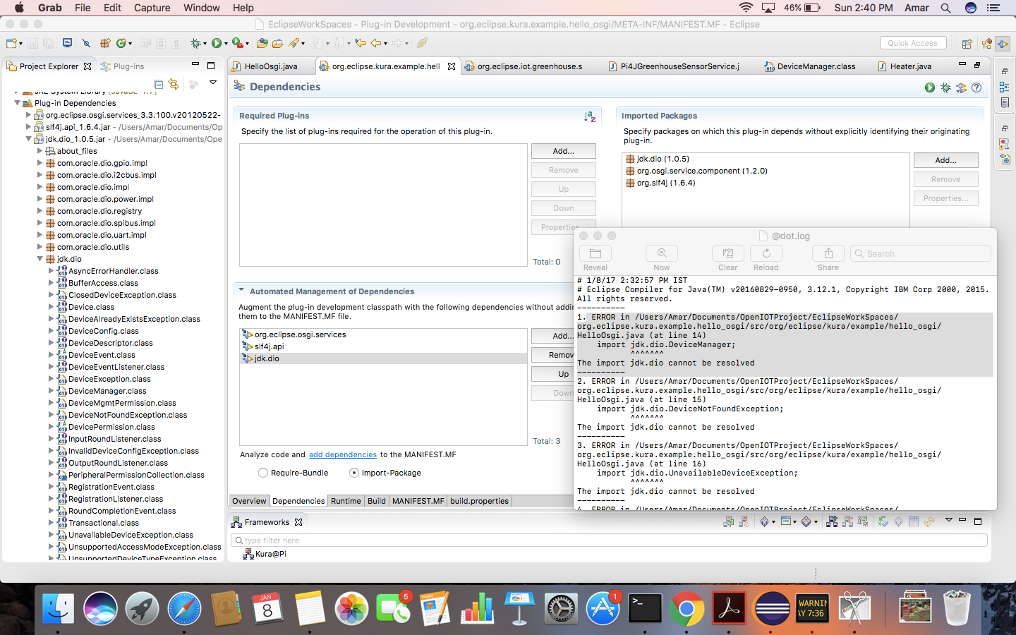 Also, Kura already includes jdk.dio, is there a reason you need to use a separate Jar?