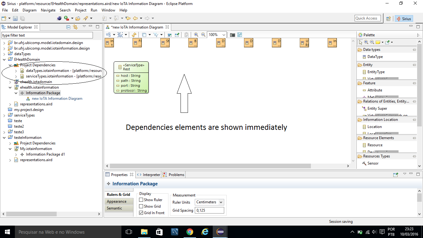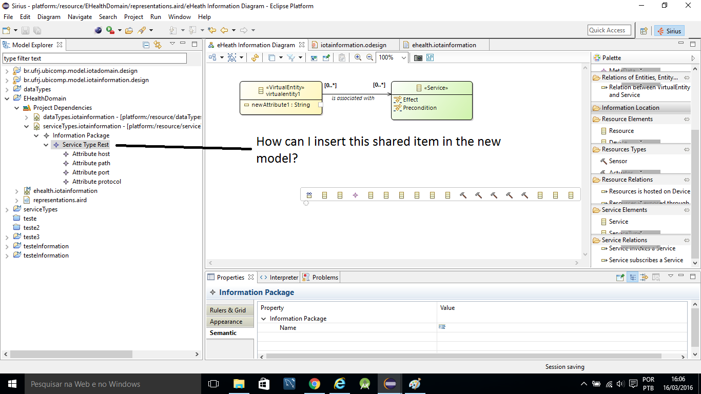 > I created a new information model (model1-information.png) where I wanted to use those elements. I've inserted those models as dependencies, but those elements are shown immediately without I select them.