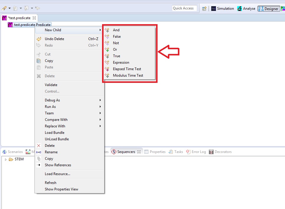 We now have the capability needed to implement interventions at a regional level, but so far no interventions are taking place. Let's say we want to start a mass-vaccination program when the total number of daily cases showing up in Malaysia goes above a threshold, say 100. First, we need to create a new predicate of the type 'Label Value Test'. Use the toolbar in STEM to create a new predicate, give it a name (e.g. "TotalIncidenceTest'). Next, right click on the new predicate, select "New Child", then "LabelValue Test". Select the new "Label Value Test" item in the editor and then open the property sheet. For the Model Name, enter the name of your disease (in this case 'Flu'). Observe this is the disease name attribute specified in your disease model, not the name of the disease file. Keep the Population Identifier as 'human', Predicate '>' (can be >, <, >=, <= or =), State 'incidence' (this is the value we want to test), Target URI 'stem://org.eclipse.stem/node/geo/region/MYS' (the URI of the target node, in this case Malaysia. You can find the URI from the Identifier Dublin Core attribute of the node in the graph containing the level 0 node of Malaysia. Keep the threshold at 100.