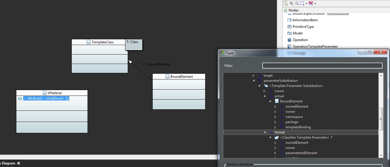 I am currently trying to understand how to created template classes and bind actual parameters to them to get a C++ STL container library as a UML model, which I plan to use then in another model by