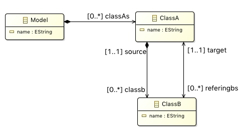 When I create a model containing an instance of ClassB that refers to ClassA instance via target reference,