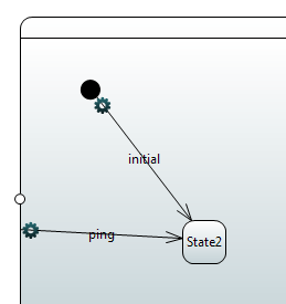 The idea is that Ponger is in state Playing::State2 when it receives ping, and since this state doesn't have any outgoing transitions whose trigger matches the incoming message, its containing state (Playing) is considered next. But only the "exiting" transitions of Playing are considered, and "exiting" transitions are those who leave the state or which start in one of the state's exiting points. This is because when you are taking a transition you are "leaving" the source state. In this case, you are not really leaving, but only the state's outgoing transitions are considered.