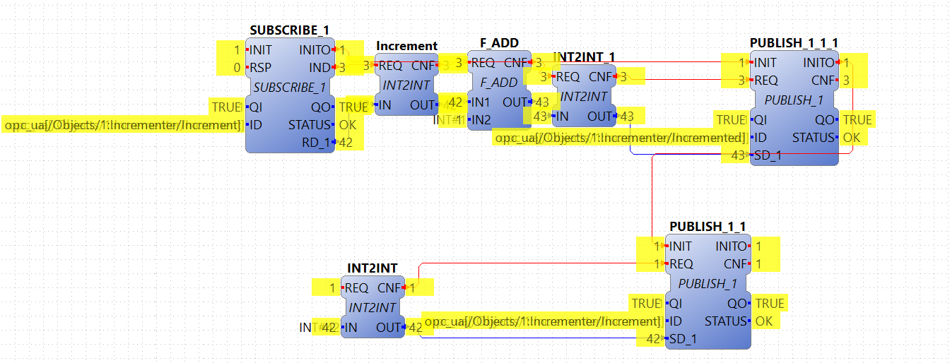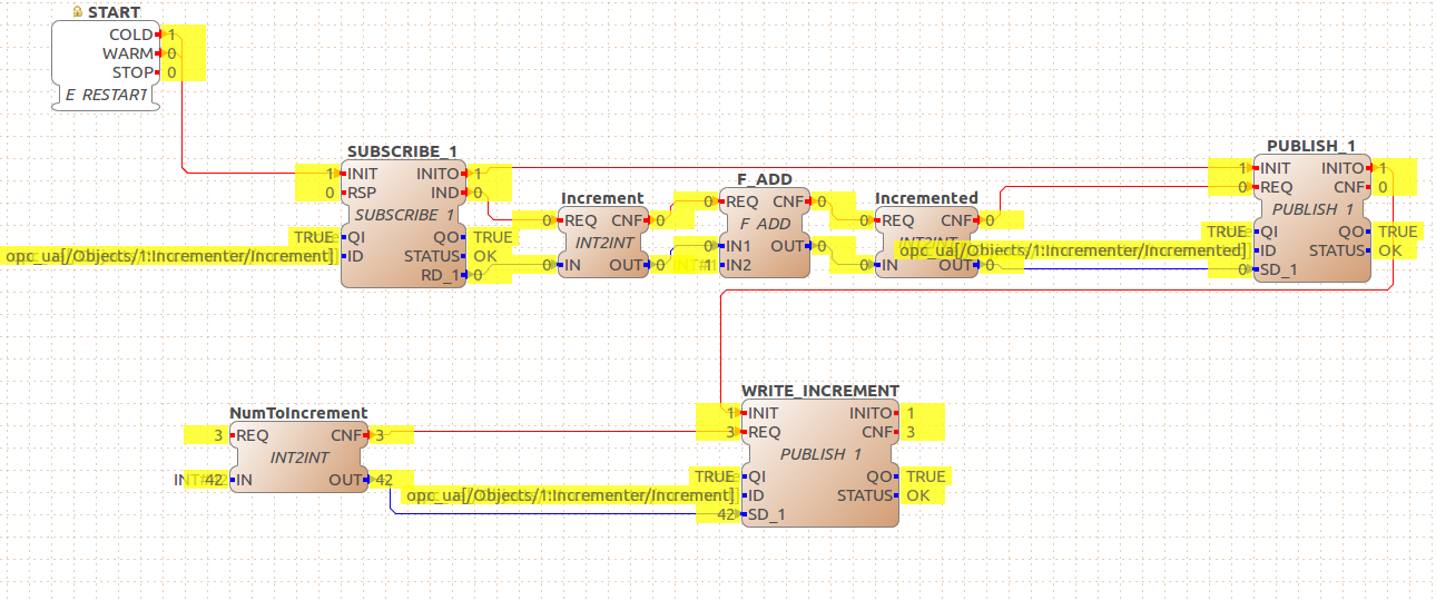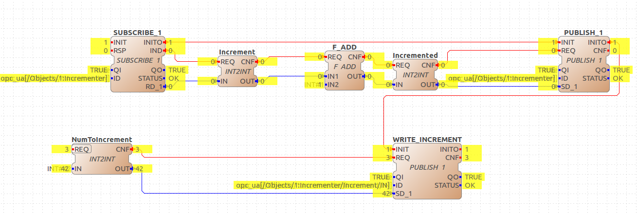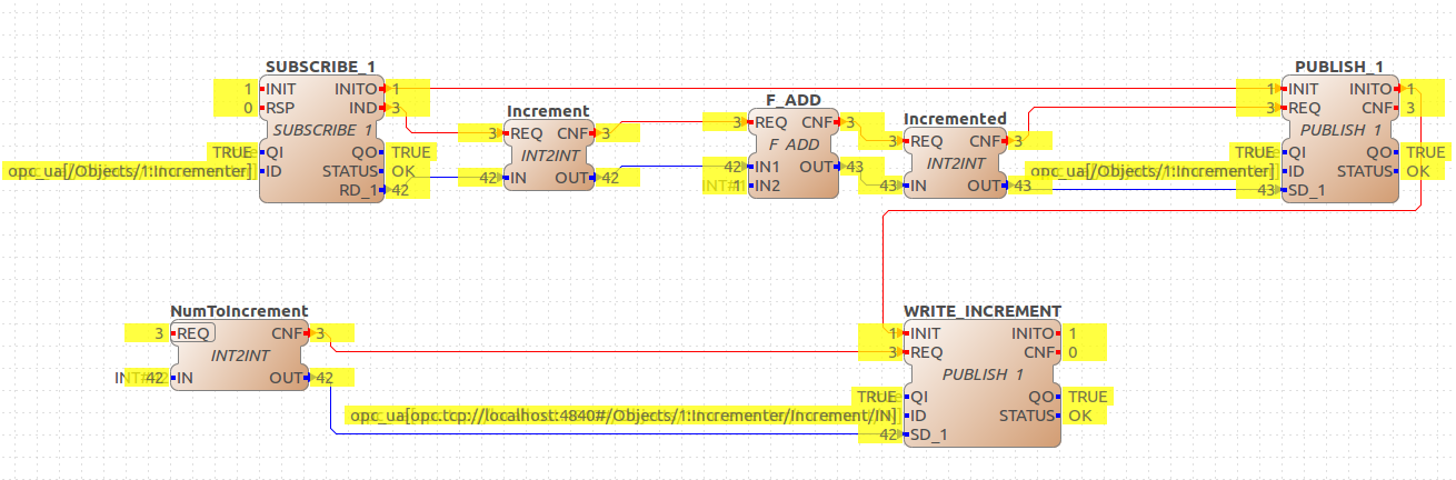 Now, if you don't use localhost:4840, as said it will try to get or create the variable. In your case it looks for Objects/incrementer/IN/NumToIncrement/OUT (since it uses the connected FB). I think the problems lies here because Objects/incrementer/IN is already a variable and it will try to create another variable in it.