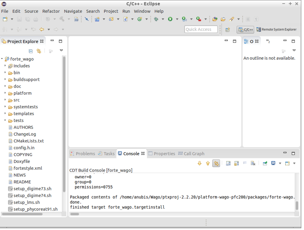 Please note that, booting from an SD card will not affect the shipped image normally. This is a "more safe approach" than booting from the shipped image. Quote:Then comes the second case. If you do not want to create a bootable image and want to use the wago image on the shipped device OR do not want to disturb the bootable image already created, then you have to manually transfer the executable files generated in .../ptxproj-2.2.20/platform-wago-pfc200/buid-target/forte_wago-1.6.2-build/src to the target remote hardware (Wago_PFC)