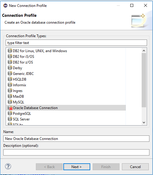 Home » Newcomers » Newcomers » Oracle DataBase Tools New Connection Profile Error(Errors when creating a new connection profile, no data to select)