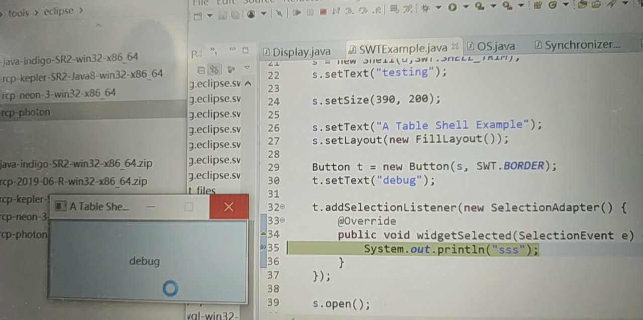 As show with below picture, when I debug SelectionListener with a breakpoint, the Shell, eclipse and OS got ANR,I have to use the windows task manager to stop the shell to get windows focus.