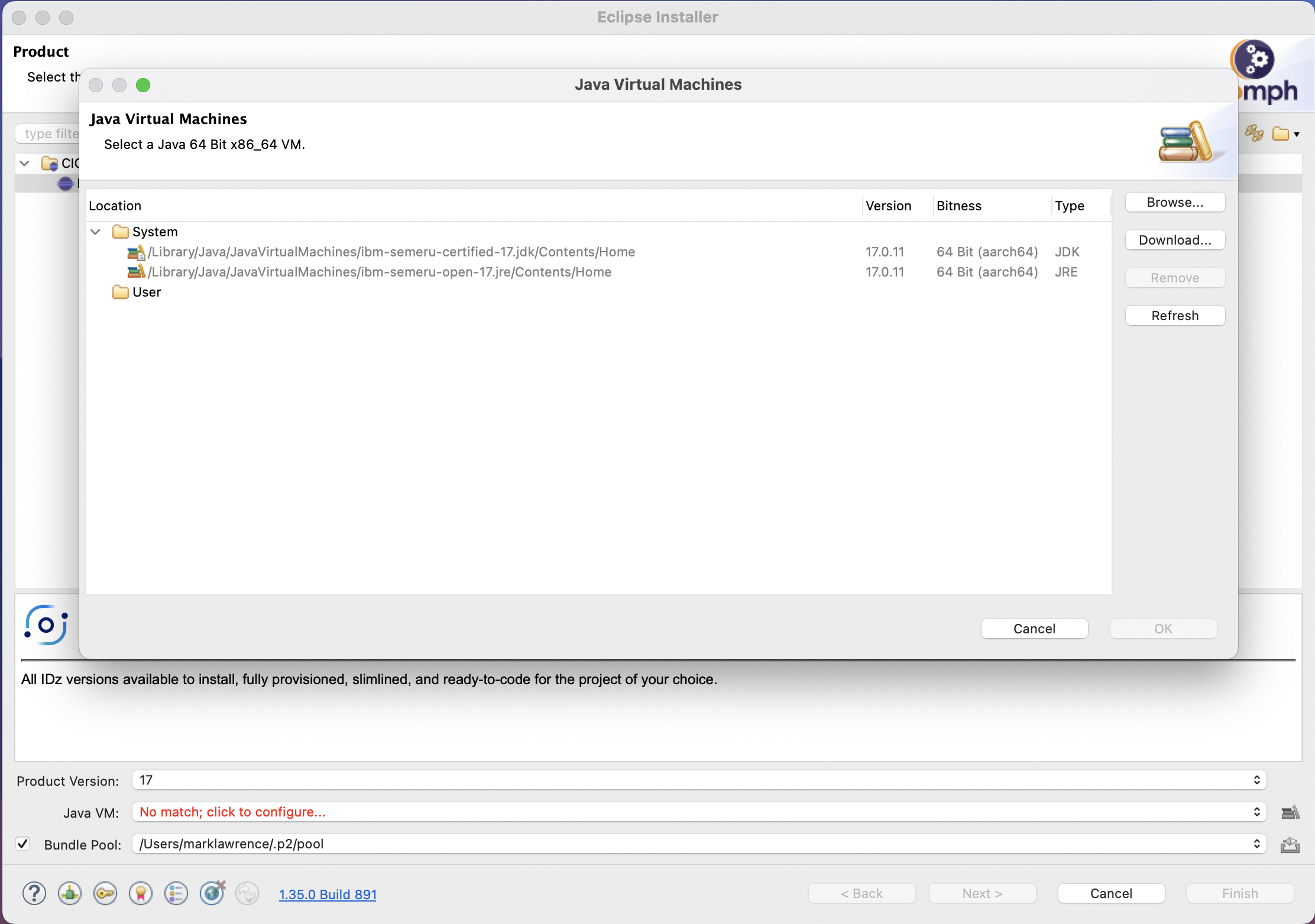 Knowing it does this now, its a game-changer, so I'm looking at how to bypass the Java VM selection on the first Eclipse Installer dialog, as I will hopefully be providing our own.