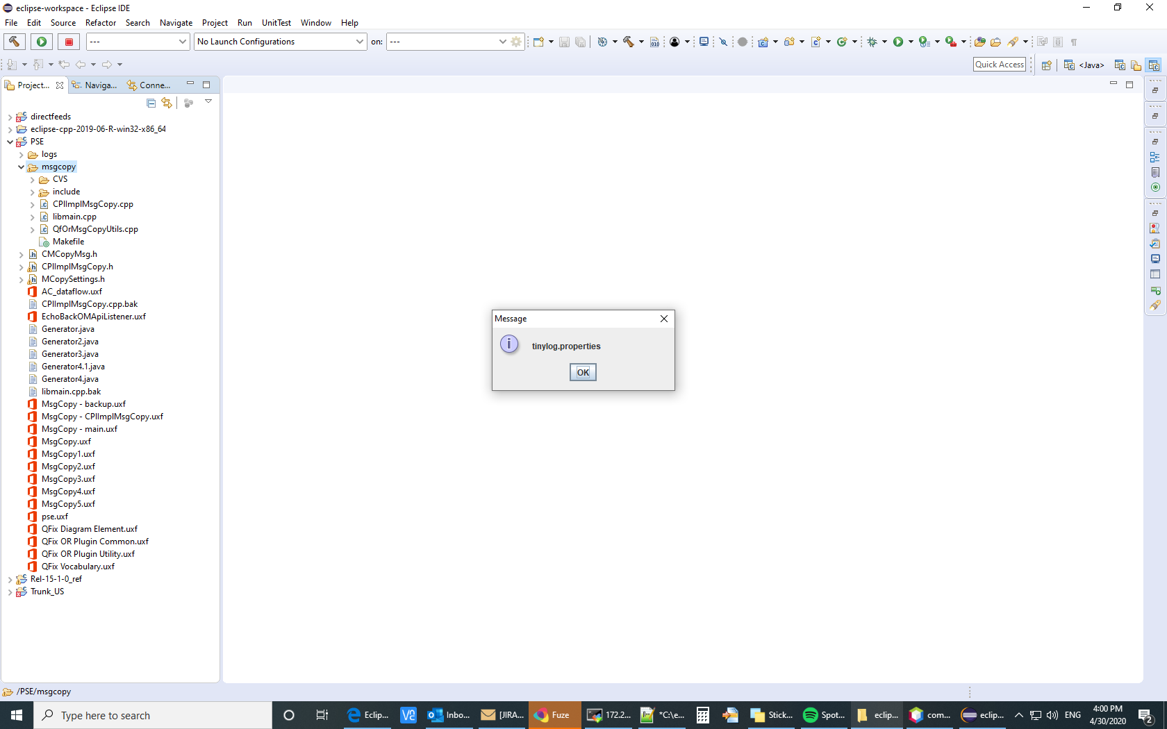 1). modified Eclipse config file (eclipse.ini) to add this line: -Dtinylog.configuration=C:\eclipse-cpp-2018-09-win32-x86_64\eclipse\tinylog.properties