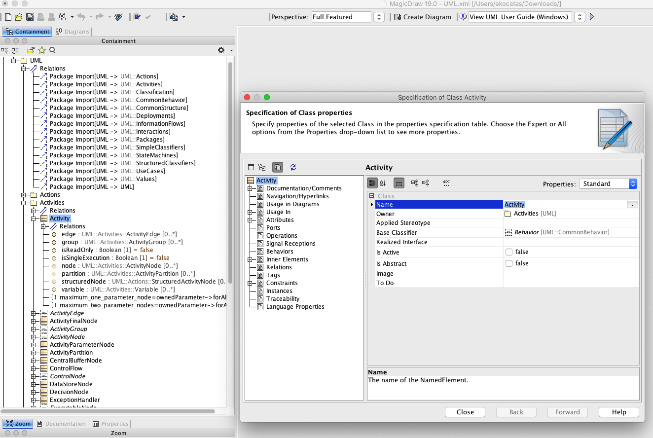 In order to better understand the relations between elements of the UML metamodel, I have downloaded the abstract syntax metamodel from OMG for latest UML specification (UML 2.5.1).
