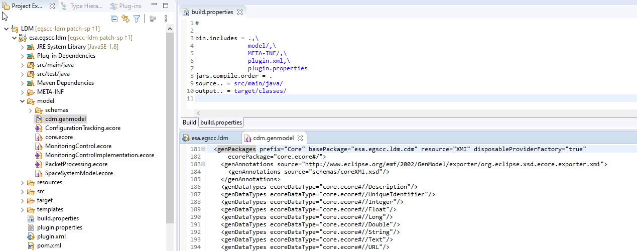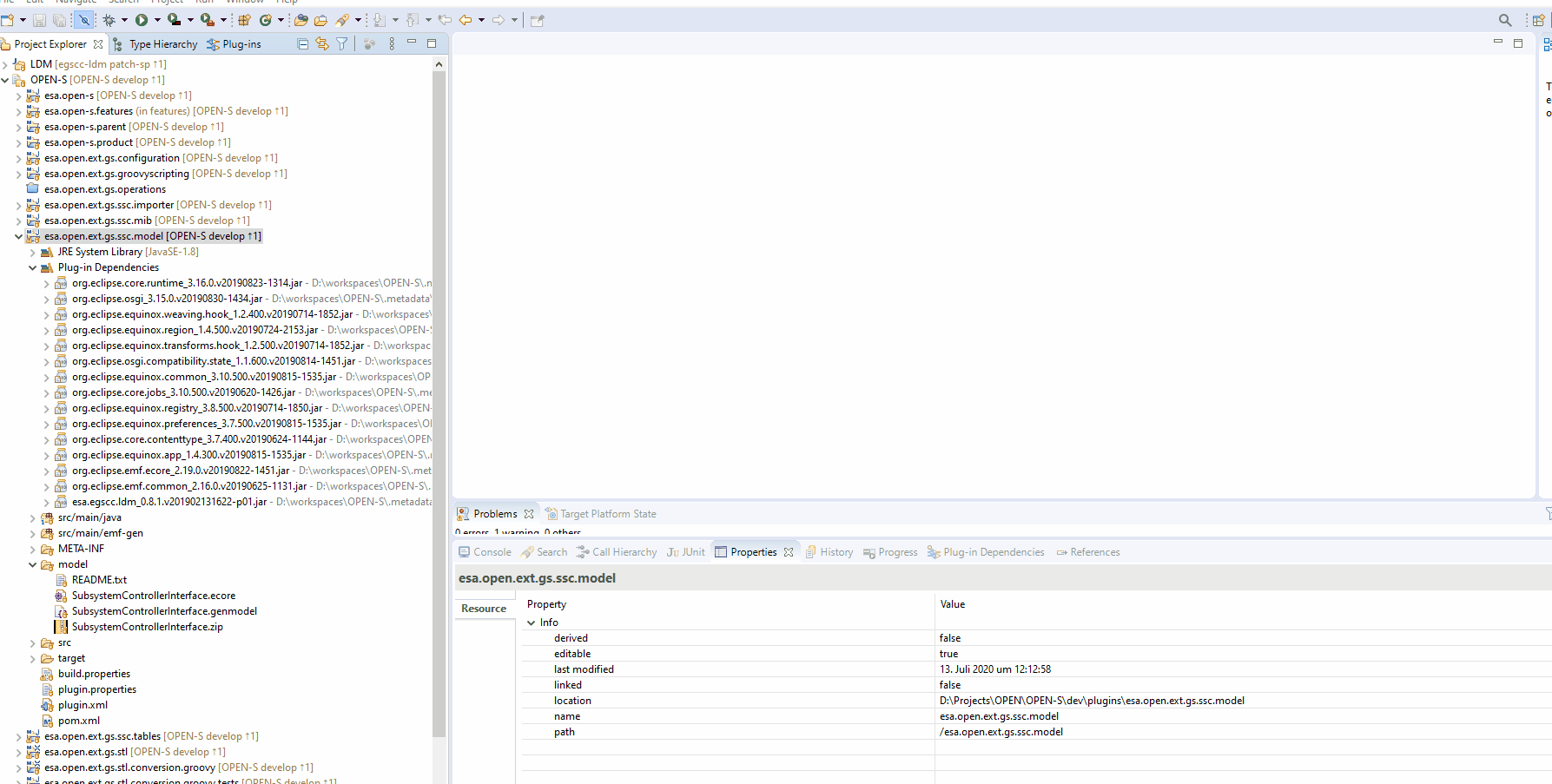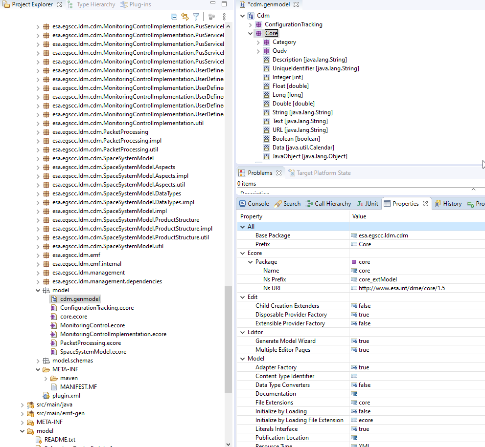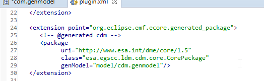 Model A does not exist in my workspace but in an external bundle that is in my Plug-In Dependencies. This bundle is currently not built as an Eclipse plug-in, because it is designed to run in a non-Eclipse environment. It has a Manifest and contains the *.ecore files and the genmodel in a model folder but there is no plugin.xml.