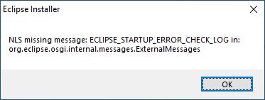 I downloaded the latest eclipse setup and tried to install it in my PC, but I get this error "NLS missing message: ECLIPSE_STARTUP_ERROR_CHECK_LOG in: org.eclipse.osgi.internal.messages.ExternalMessages". But when i used the same setup file in another PC, it got installed. Here both the PCs are installed with the same version of the Windows 10 and the Hardware is identical.