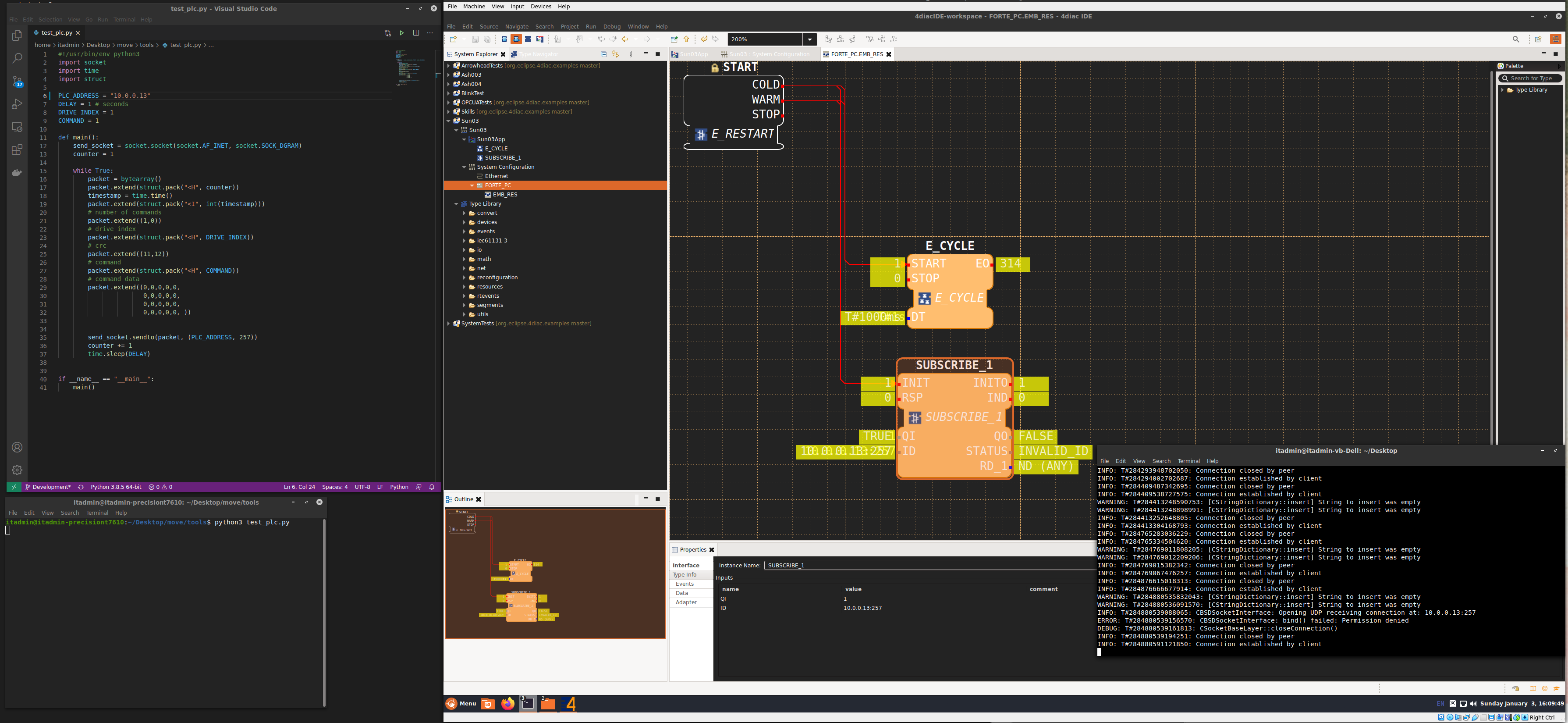 screen shot 2 also shows python program sending out a TCP/IP message and a example of a Fuji PLC recving a TCP/IP message in a word array,