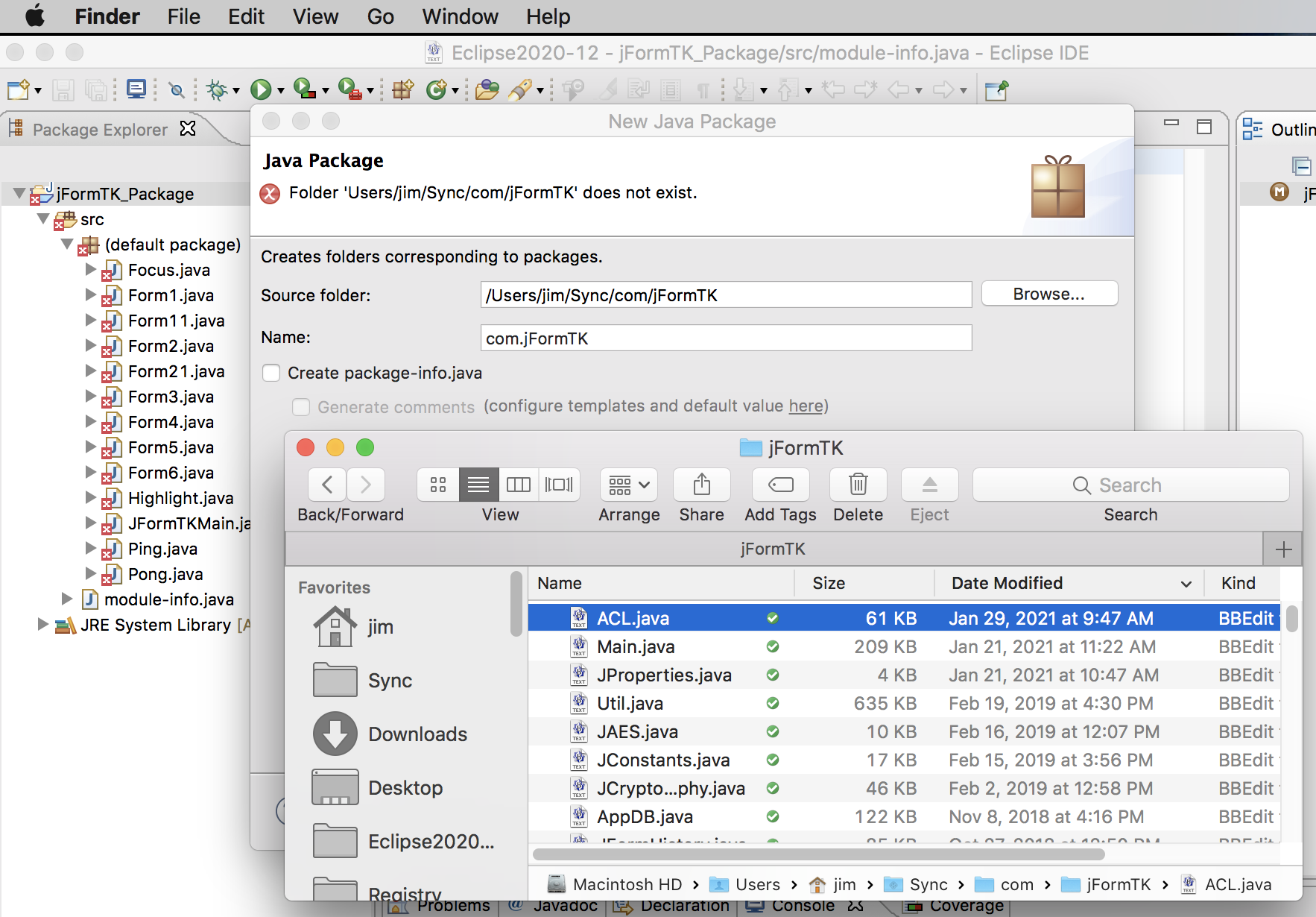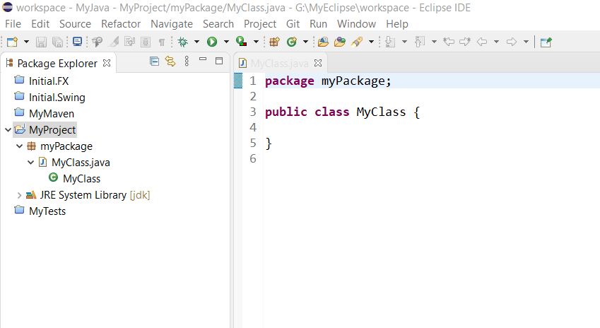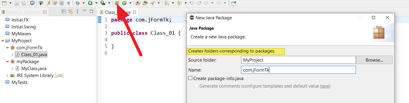 The application shall use a Java package [myPackage] which I intend to use on multiple Java stand alone apps. Therefore, I need to setup an Eclipse Project designed solely to produce the 'myPackage.jar' file that shall be used in my Java stand alone application Eclipse Projects.