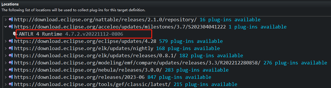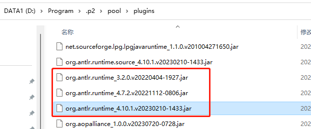 In addition, I just packaged the three versions of org.antlr.runtime into the local P2 repository and registered them in pom.xml, and found that the result is the same as using the url on the line.