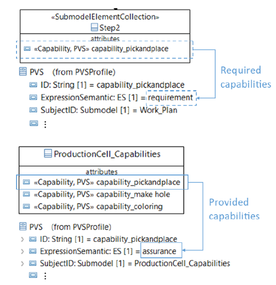 Thank you for your response. I would like to clarify my question regarding the PVS (Property Value Statement) qualifier. In the context of the Asset Administration Shell (AAS) and specifically the Capability submodel, a PVS qualifier is used to describe additional attributes of a capability, such as requirements, assurances, offers, and measurements. This is important for capability matching during runtime in a production environment.