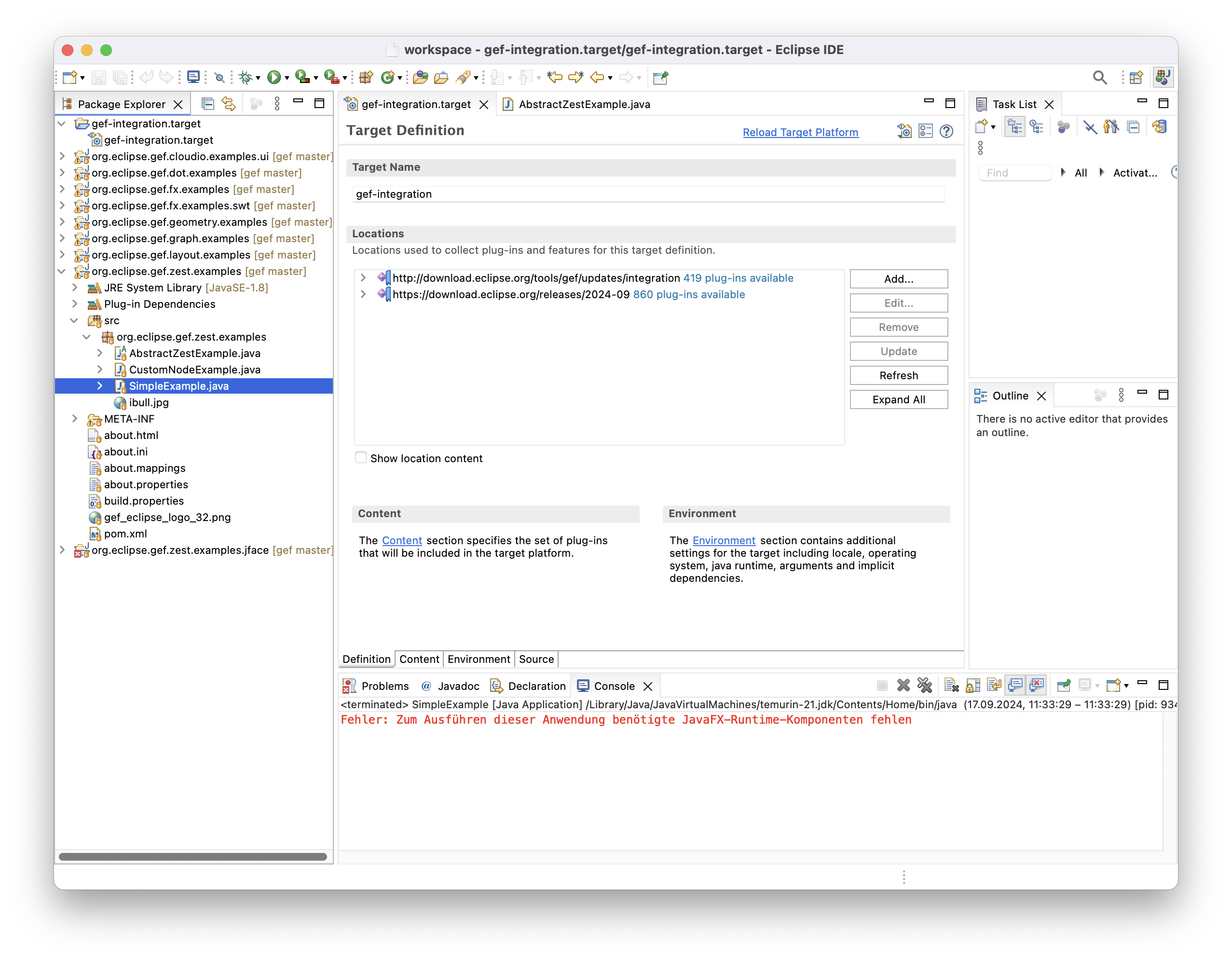 Home » Eclipse Projects » GEF » zest examples SimpleExample: JavaFX-Runtime-Komponenten fehlen