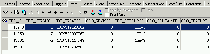 SQL queries have all to be made aware of the version of an object, i.e. if I do not want to have old revisions returned, I have to add check the revision by adding a "cdo_version > 0" to the where clause...