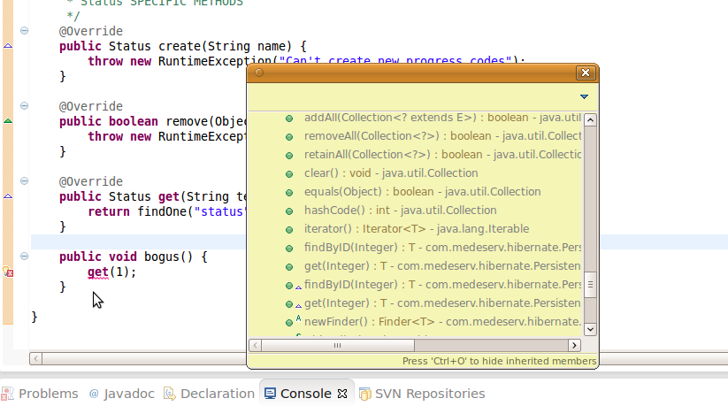 * The outline quick view (ctrl+O, ctrl+O) shows the method present as expected