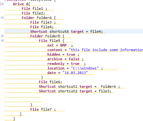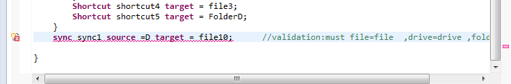 Correct Language(I wanted) :sync sync1 source =file9 target = file10; or  sync sync1 source =Folder1 target = Folder2;