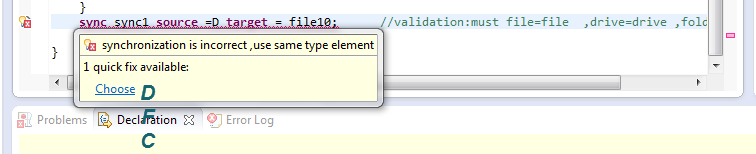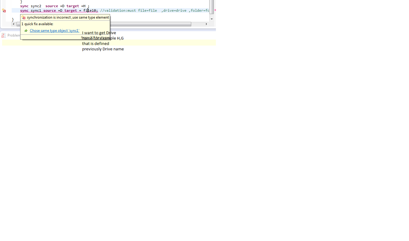 I write validation for Sync .if source is a file type Target must be file.I cehck this case but I want to write quick fix if source is a file, for  targer comes files types or just the opposite.I hope understand my problem.I solved this problem How solved