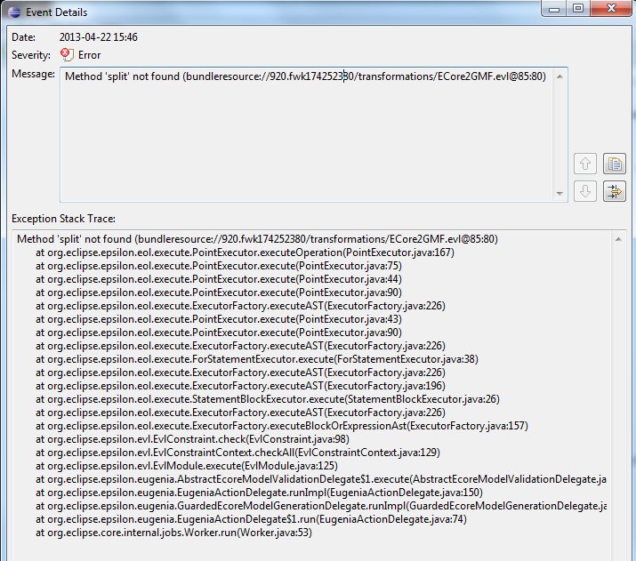 I seem to have stumbled upon an error[1] that I find strange and I was wondering if anyone could help me with it. I get it when I try to run "Eugenia->Generate GMF tool, graph and map models" on my ecore file after I have annoted it in an emf file.