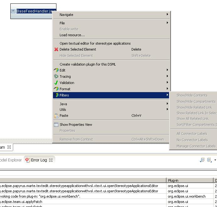 I'm trying to create a class diagram using reverse engineering. I am able to create a model file (.di) and can open the file in Model explorer after doing the discovery of all Java artefacts. When I create a diagram on root model and drag-drop classes, they appear on the diagram but none of them have any attributes/methods visible, and when I click on Filters(right click on class -> Filters) everything is greyed out there (all options of Show/Hide contents are disabled)> Please refer attached snapshot.