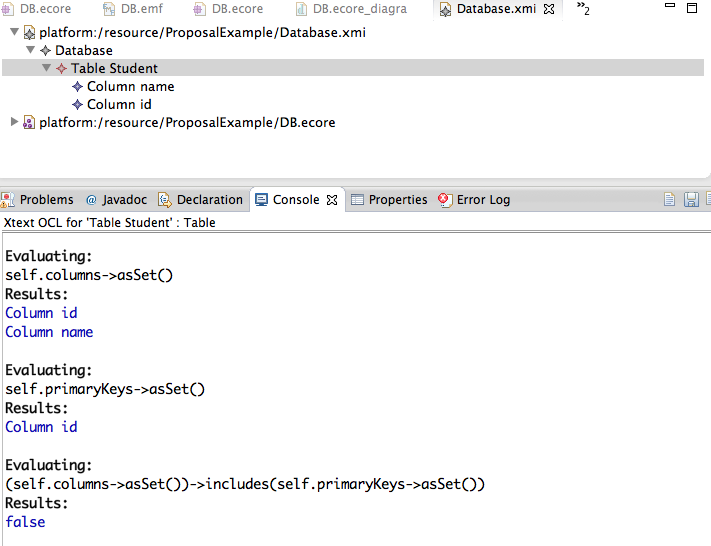 I am using interactive Xtext OCL inside eclipse for evaluating OCL expressions