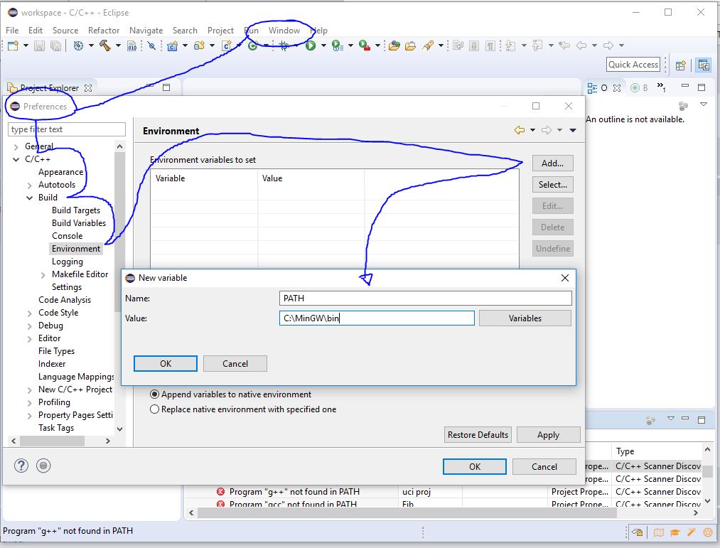 Program "g++" not found in PATH Preferences, C++/Build/Settings/Discovery, [CDT GCC Built-in Compiler Settings] options C/C++ Scanner Discovery Problem
