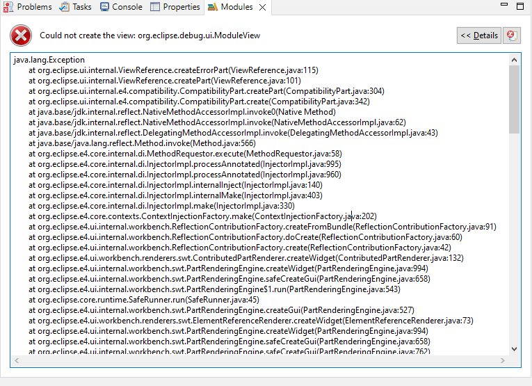Modules view is supplied by Eclipse Platform