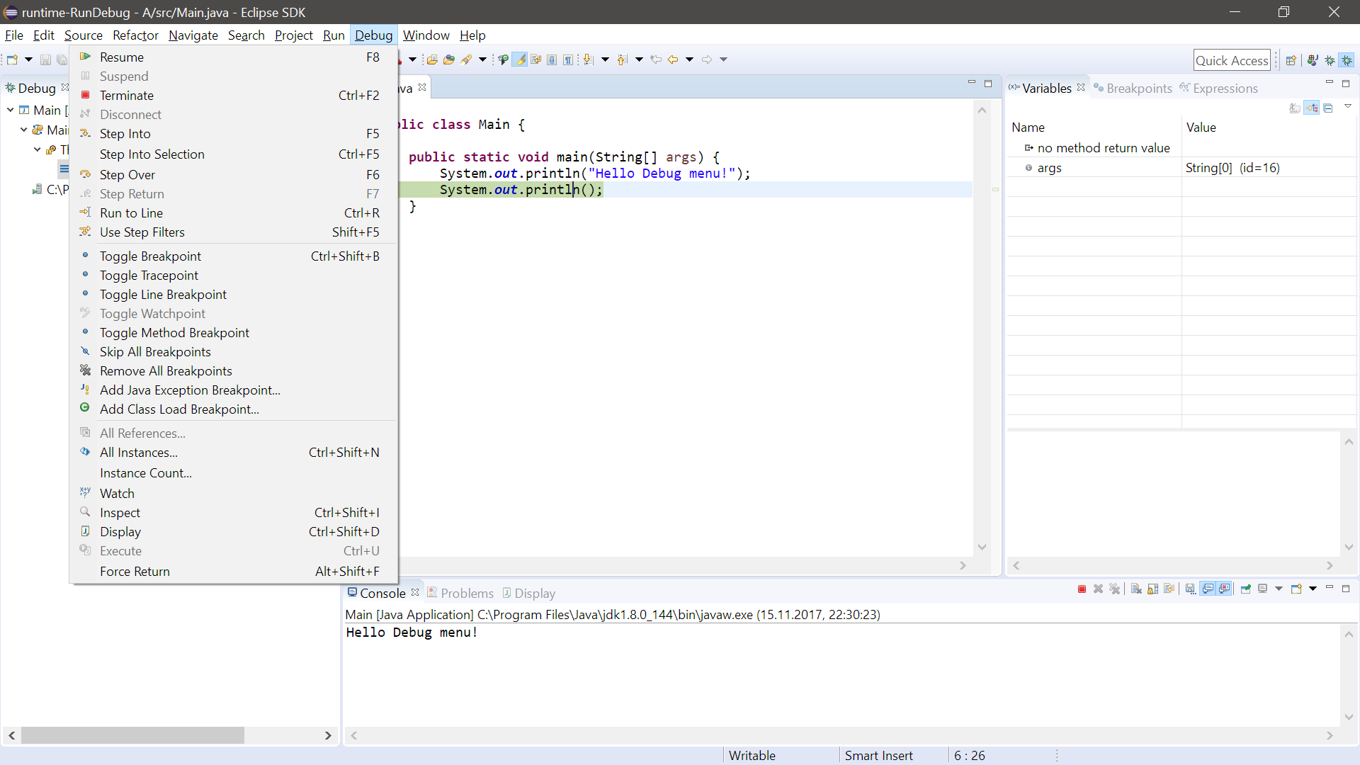 The top of the screenshot is the top o the screen. You can see the "Search" and the "Project" menu entry. "Run", "Window" and "Help" are hidden behind the drop down and can't be selected.