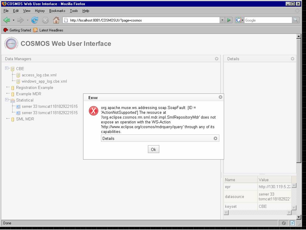 I’m trying to submit a query to the SML MDR using the COSMOS UI,